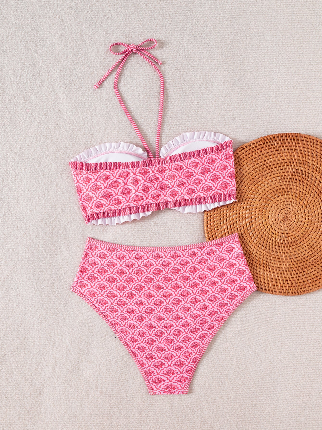 Paired with high-waist triangle briefs, this set highlights your shape while keeping you confident and supported. Made from smooth nylon with a soft polyester lining, it’s perfect for swimming, water sports, or soaking up the sun. Available in a variety of colors and patterns and sizes S–XL, this bikini is made to stand out wherever summer takes you.